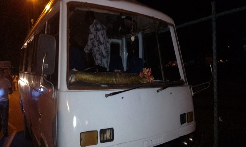 கல் வீச்சுத் தாக்குதலின் விளைவாக பேருந்தில் இருந்த இரண்டு பேருக்கு லேசான காயம் ஏற்பட்டுள்ளதாக எமது பிராந்திய செய்தியாளர் தெரிவித்தார்.