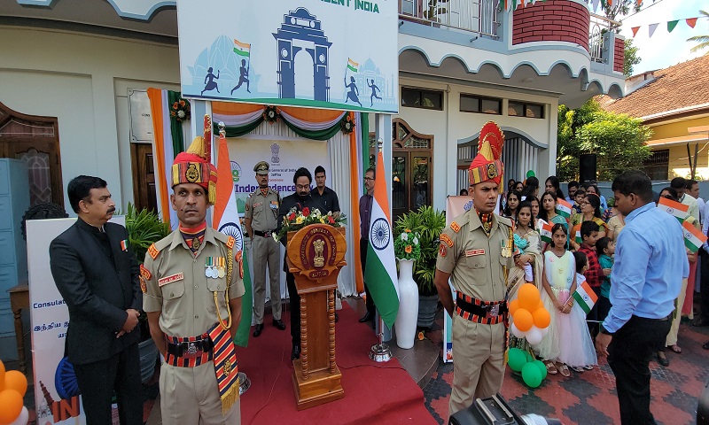 இதன் போது யாழ்ப்பாணத்திற்கான இந்திய துணைத் தூதுவர் சாய் முரளி அணிவகுப்பு மரியாதையுடன் அழைத்து வரப்பட்டு இந்திய தேசியக் கொடியை ஏற்றி வைத்தார்.