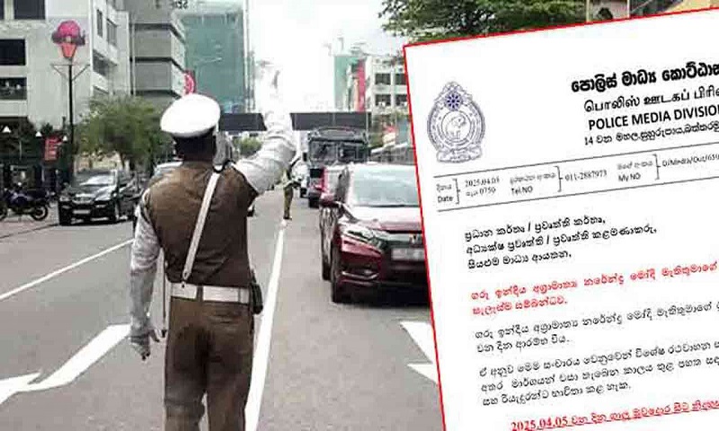 இந்தியப் பிரதமர் நரேந்திர மோடியின் இலங்கை வருகையை முன்னிட்டு செயல்படுத்தப்பட்டுள்ள போக்குவரத்துத் திட்டத்தின்படி கொழும்பைச் சுற்றியுள்ள வீதிகள் மூடப்படும் முறை குறித்து பொலஸார் இன்று (5/4/2025) புதிய அறிக்கை ஒன்றை வௌியிட்டுள்ளனர்.