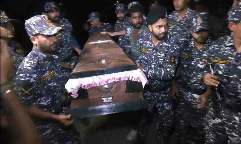 அனுப்பி வைக்கப்பட்ட மீனவர்கள் மற்றும் உடலை சர்வதேச கடல் எல்லையில் வைத்து இந்திய கடற்படைக்கு சொந்தமான ஐஎன்ஸ் பித்ரா கப்பலில் ஒப்படைத்தனர். உடலை பெற்று கொண்ட கடற்படை வீரர்கள் இராமேஸ்வரம் மீன் பிடித்து துறைமுகத்திற்கு எடுத்து வந்து இராமேஸ்வரம் மீன்வளத்துறை அதிகாரிகளிடம் ஒப்படைத்தனர்.