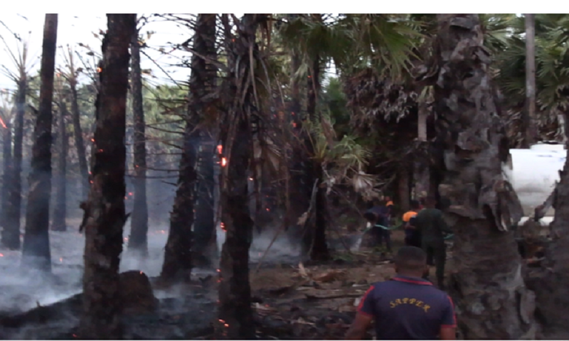 விஷமிகளால் வைக்கப்பட்ட தீ பரவலாக பற்றி எரிகின்ற போதும் தீயணைப்பதற்கு இராணுவத்தினர் கடுமையாக போராடி வருகிறார்கள், பற்றி எரியும் தீ ஏனைய பனை மரங்களுக்கும் வேகமாக பரவி வருகின்றது.