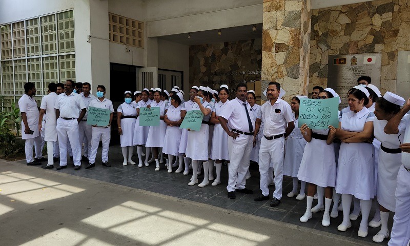 யாழ். போதனா வைத்தியசாலையின் பிரதான வளாகத்தில் ஒன்று கூடிய தாதியர்கள் தாதியர்களுக்கு பாதீட்டில் சரியான நீதியை பெற்றுக் கொடு, குறைக்கப்பட்ட மேலதிக நேர கொடுப்பனவை அதிகரி, பதவி வியர்வை பழைய முறைப்படி வழங்கு ஆகிய பதாதைகளை ஏந்திய வண்ணம் போராட்டத்தில் ஈடுபட்டனர்.