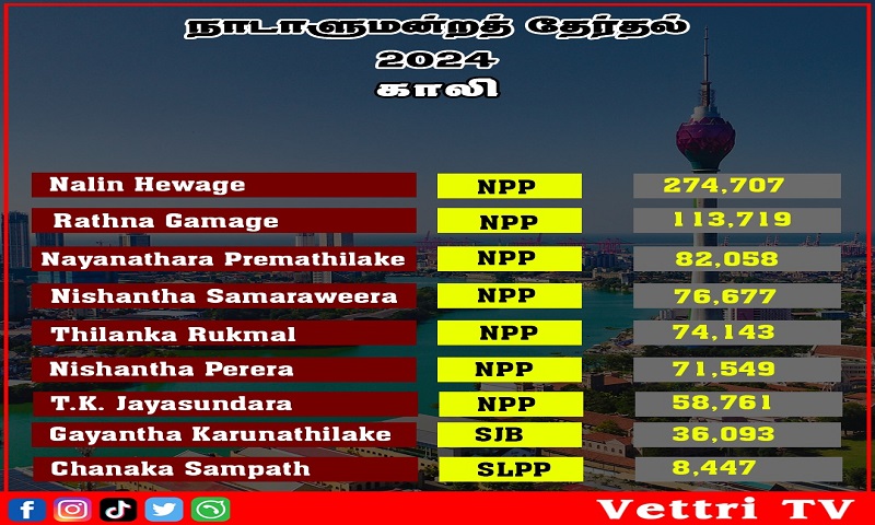 நடைபெற்ற பாராளுமன்ற தேர்தலில் காலி மாவட்டத்தின் விருப்பு வாக்கு முடிவுகள் வெளியாகியுள்ளன.