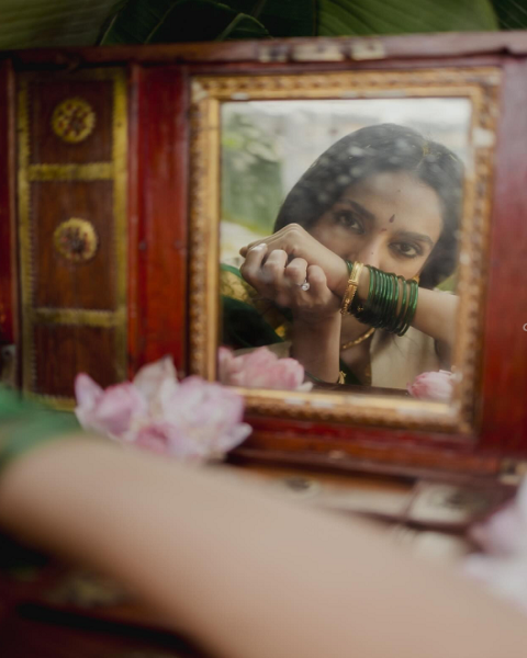 திருமண கொண்டாட்டம் வீட்டில் தொடங்கி இருக்கும் ஸ்டில்களை தற்போது சோபிதா வெளியிட்டு இருக்கிறார்.