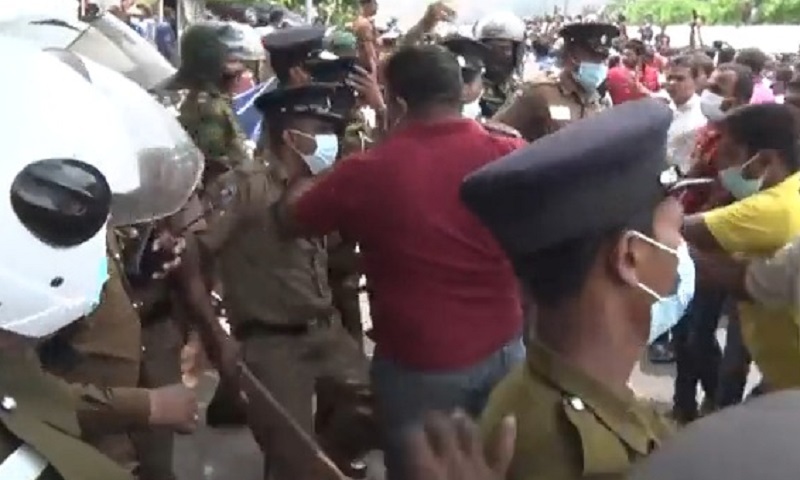 இதனையடுத்து, ஆர்ப்பாட்டத்தில் ஈடுபட்டவர்கள் தொடர்ந்தும் முன்னேறிச் செல்ல முற்பட்டபோது, காவல்துறையினர் அவர்களை கட்டுப்படுத்த முயன்றனர்.