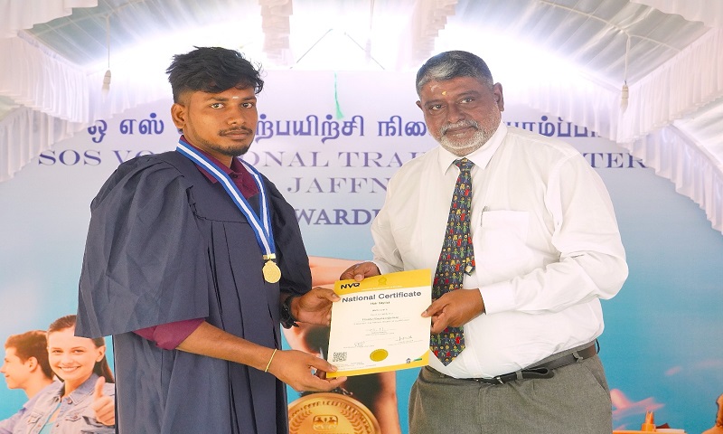 அரியாலையில் அமைந்துள்ள எஸ்.ஓ.எஸ். தொழிற்பயிற்சி நிலையத்தில் கற்கைநெறிகளை நிறைவு செய்த மாணவர்களுக்கான என்.வி.க்யூ. தரச் சான்றிதழ்களை வழங்கும் நிகழ்வு, தொழிற்பயிற்சி நிலையத்தில் இன்று செவ்வாய்க்கிழமை (20.05.2025) நடைபெற்றது.