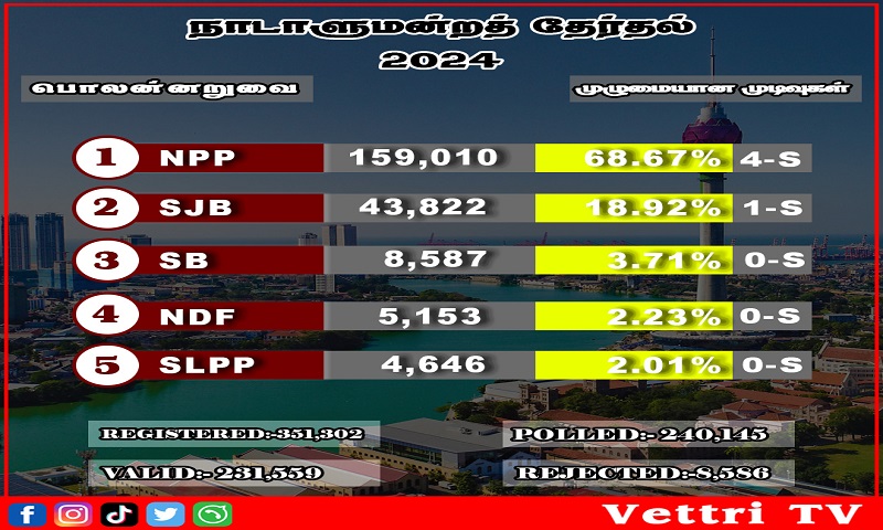 தேசிய மக்கள் சக்தி பெற்றுக்கொண்ட வாக்குகளின் எண்ணிக்கை – 159,010