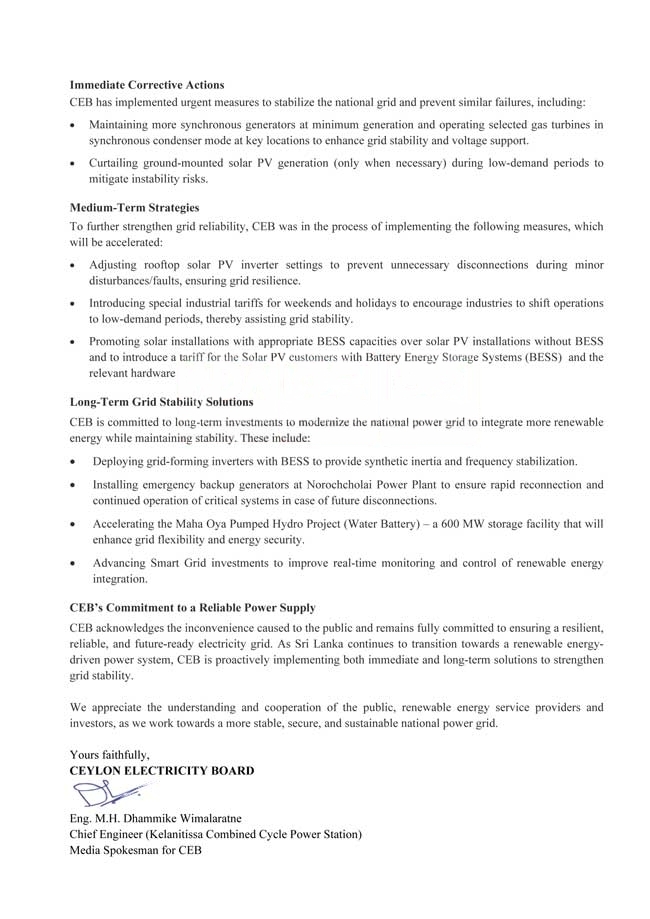 மின்சார அமைப்பை வலுப்படுத்துவதற்கான நீண்டகால தீர்வுகளையும் இந்த அறிக்கை வெளிப்படுத்தியுள்ளது.