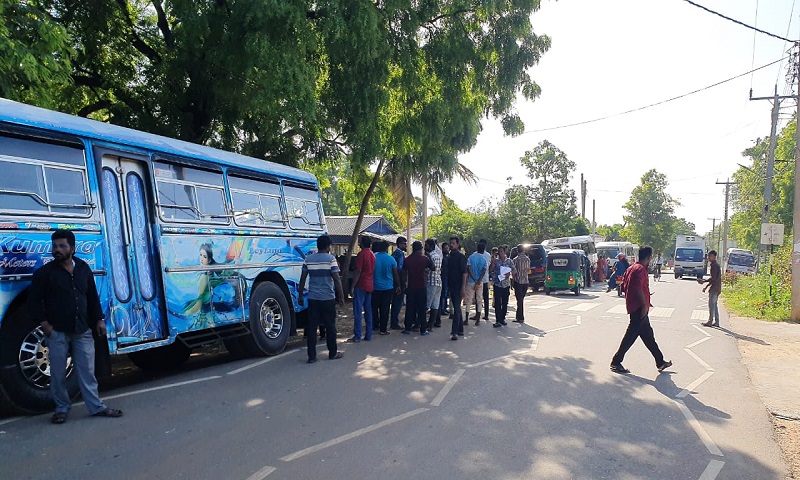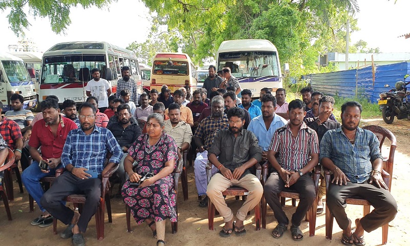 யாழ்ப்பாணத்தில் 769 வழித்தட சேவையில் ஈடுபட்டுள்ள தனியார் பேருந்து உரிமையாளர்கள், சாரதிகள், நடத்துனர்கள் வீதி மறியல் போராட்டத்தில் ஈடுபட்டுள்ளனர்.